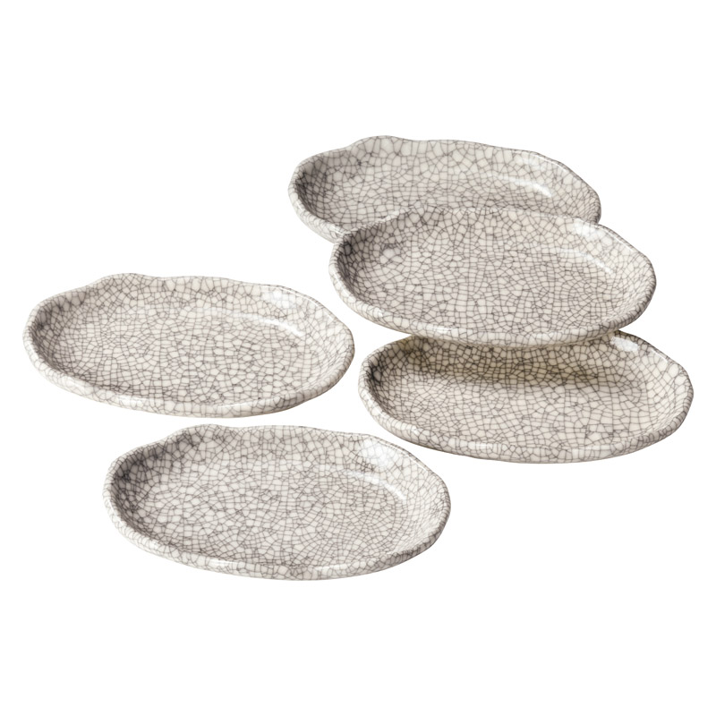 墨貫入(ヒビ柄)が美しい皿揃です。