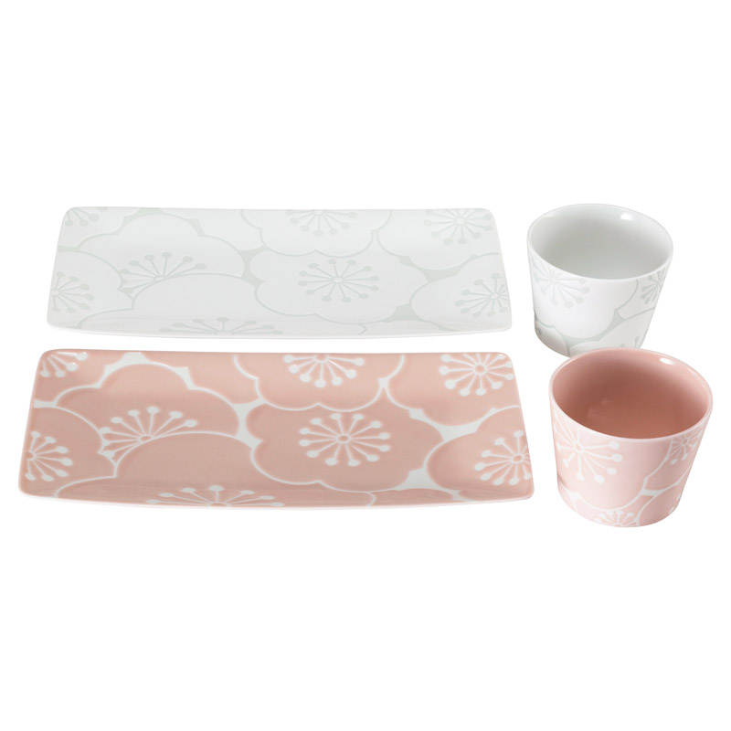 【内容】 カップ(約150ml)(約直径75×60mm)、長角皿(約250×135×15mm)×各2