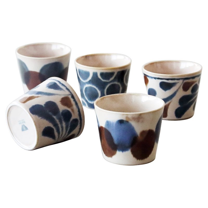 色の濃淡や釉薬の流れ、柄のにじみなどそれぞれが違う出方になるのも特徴です。 それが個性となり、手描きのような質感をお楽しみください。
