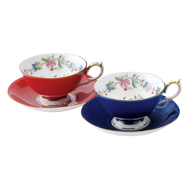 ペンブロックとは南ウエールズ地方のペンブロックシャイアーという首都の名です。 ヘンリー7世の誕生で有名な城があり、景観のすぐれた土地です。 18世紀この地を訪れたデザイナーが、当時西洋ではなかなか手に入らなかった日本の伊万里焼を目にします。 そして東洋の憧れが舞い降りてきた喜びから、この伊万里焼をイメージしてデザインされました。 1970年代に復刻し、現在ではエインズレイを代表する作品の一つとなっています。