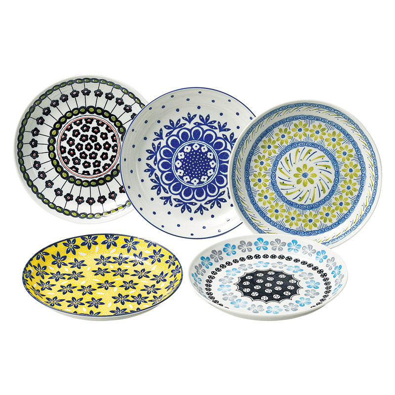 ポーランド風のキュートなデザイン。 軽くて丈夫なので普段使いからおもてなしまで幅広くお使いいただけます。 国産の磁器土の皿に下絵の花柄を付けました。