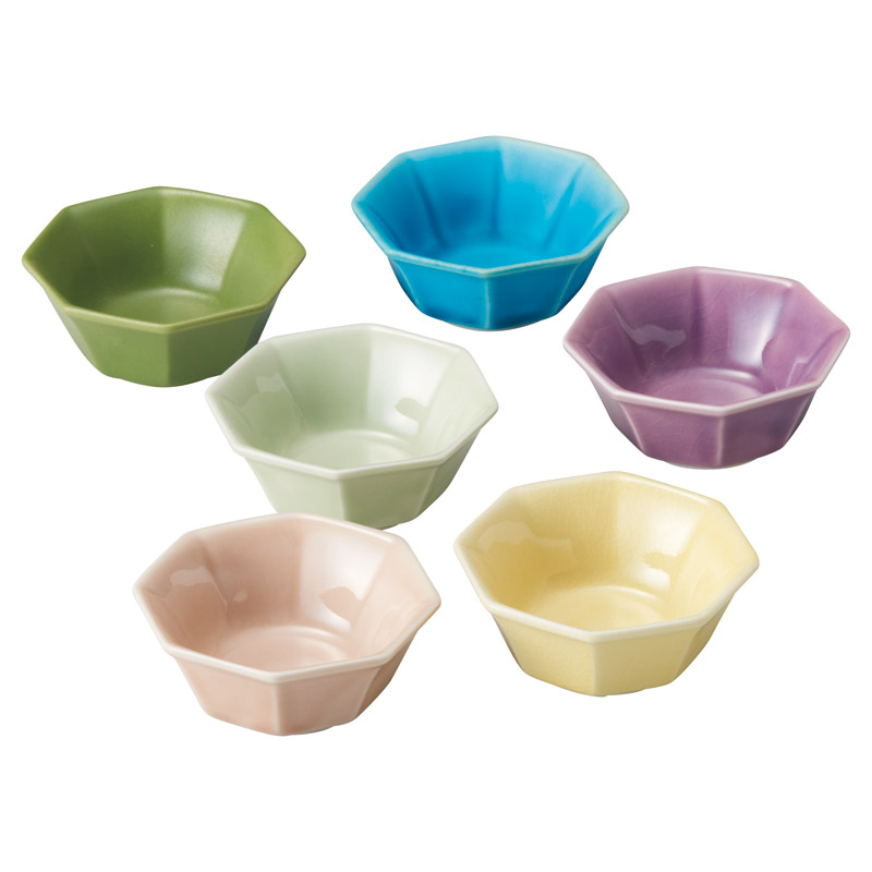 ディップソースや薬味皿としてもご活用いただけます。 かわいいカラフルな8角ミニ小鉢は食卓に彩を添えてくれます。