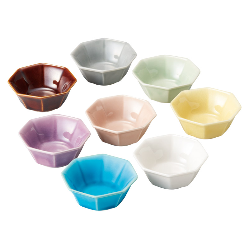 ディップソースや薬味皿としてもご活用いただけます。 かわいいカラフルな8角ミニ小鉢は食卓に彩を添えてくれます。