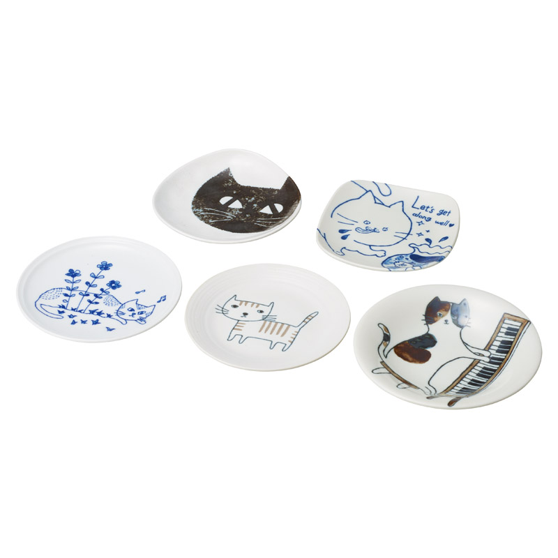 デザイナーたちの遊び心あるお皿の猫柄でそれぞれ形状の異なるお皿セット。