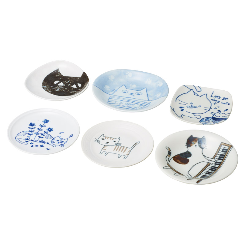 デザイナーたちの遊び心あるお皿の猫柄でそれぞれ形状の異なるお皿セット。