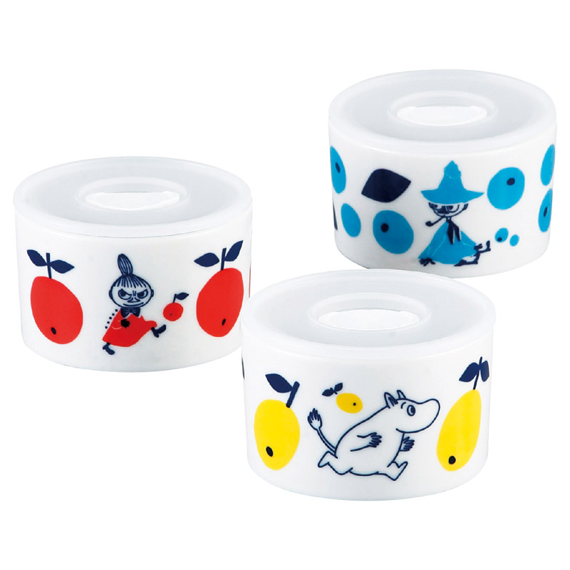 カラフルなフルーツやお花とムーミンたちがテーブルを彩ります。 レンジでチンしてそのまま食卓に。