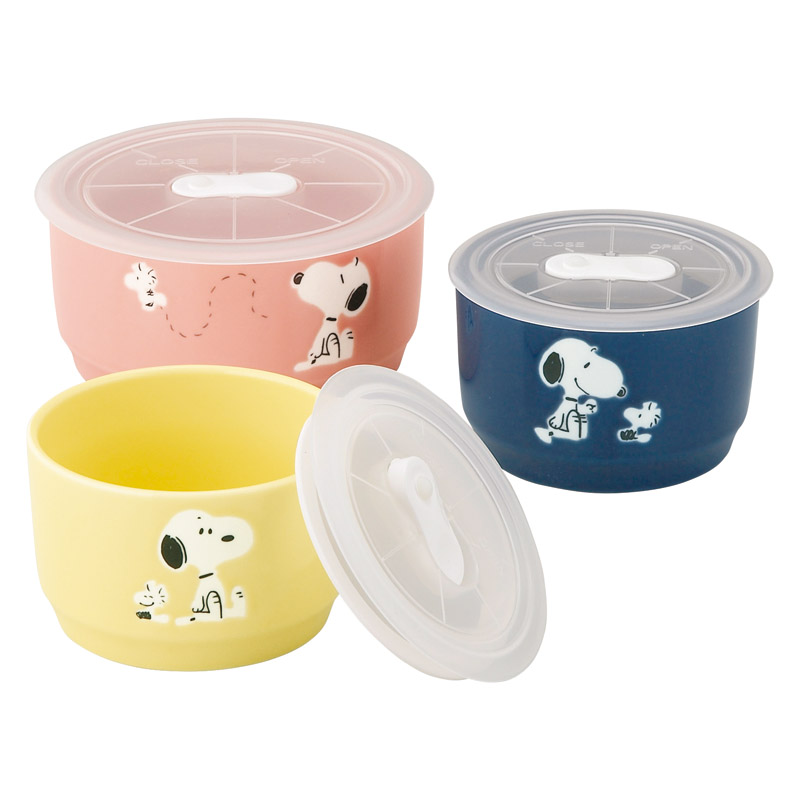 パステルカラーとネイビーのコントラストに、シンプルなワンポイントが食卓に映えます。 可愛らしくユーモラスなスヌーピーたちをお楽しみください。