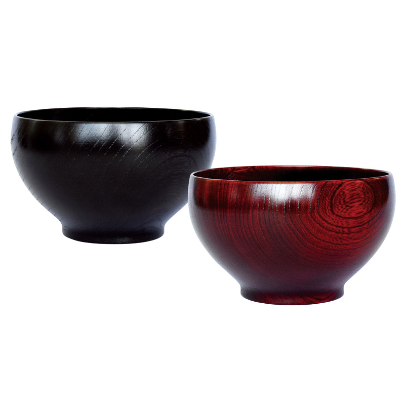 石川県山中でひとつひとつ丁寧に作られた漆塗りのお椀ペアセットです。 木地には木目の綺麗な「セン」を使用し黒漆と朱漆の2色で塗り上げました。