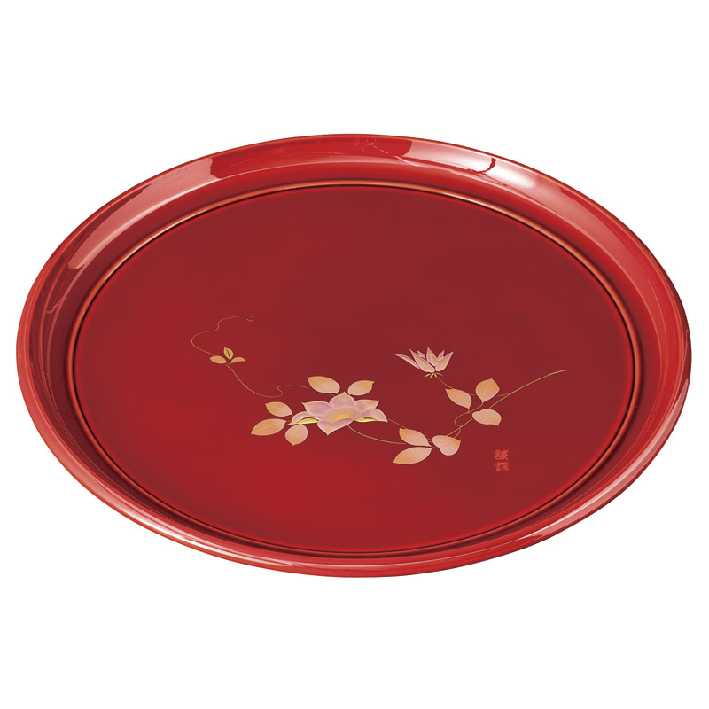 独特の透明感をもつ春慶塗りのベースに現代蒔絵と盛絵技法を駆使し鉄線の柄を上品に絵付けしました。