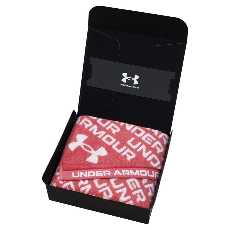 スポーツブランド「UNDERARMOUR」から想いを届けるタオルギフト。 アメリカ、メリーランド州ボルチモアに本社を置くスポーツブランド「アンダーアーマー」。 アスリートが持てる能力を最大限に発揮できるよう飽くなき追求を積み重ねてきた、パフォーマンスアスレチックブランド。 ブランド名は「セカンドスキン(第二の皮膚)」のように身体に密着するという特徴的なウェアを、ユニフォームの下(=Under)に着用する=「アスリートが戦うための鎧(よろい=Armour)」としたことに由来する。