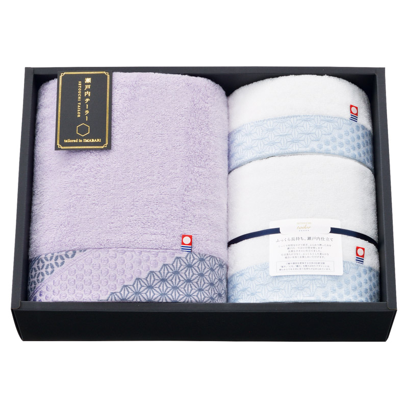 ふっくら長持ち、瀬戸内仕立て。 時間をかけて紡いだ糸をふんわりと撚り、良質なタオルに仕立てました。 ご縁と調和を意味する「亀甲」「籠目」「七宝」を散りばめたデザインのギフトです。