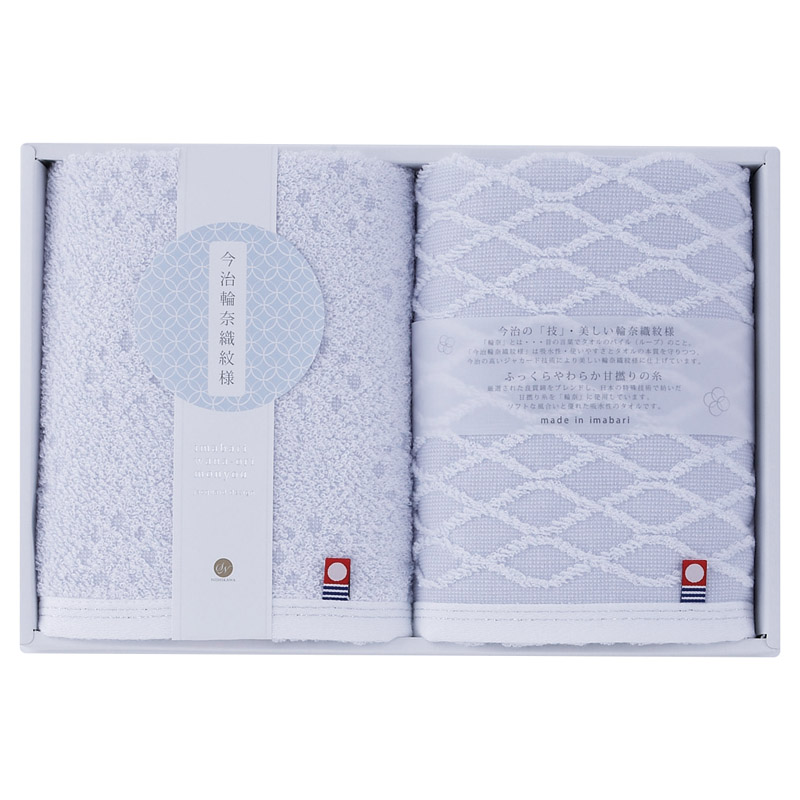 今治輪奈織紋様 あられ&つなぎ フェイスタオル2P