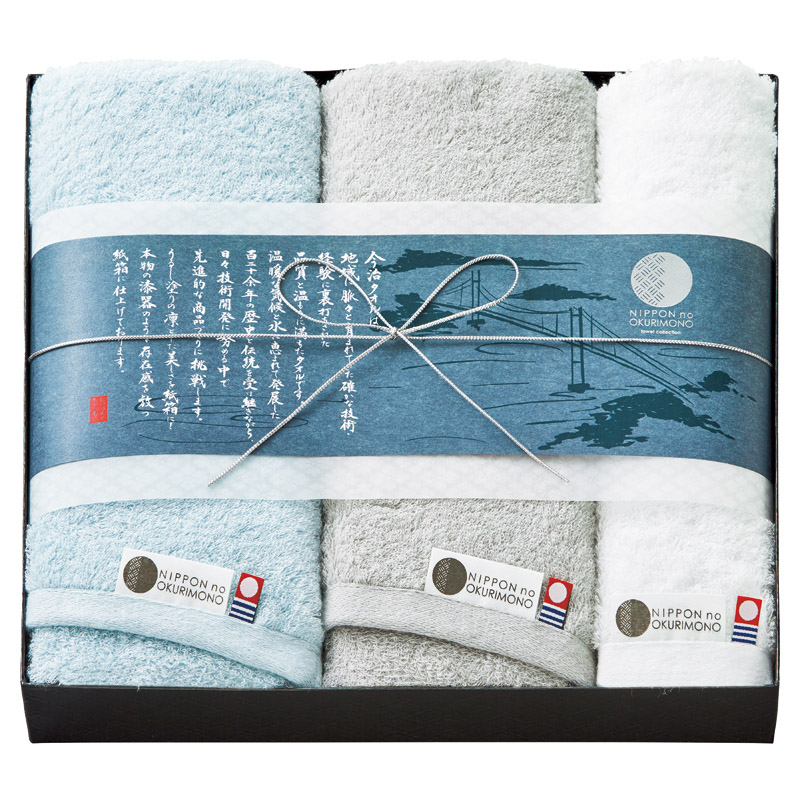 こだわりの今治タオルを漆紙を使用したギフト箱にセットしました。