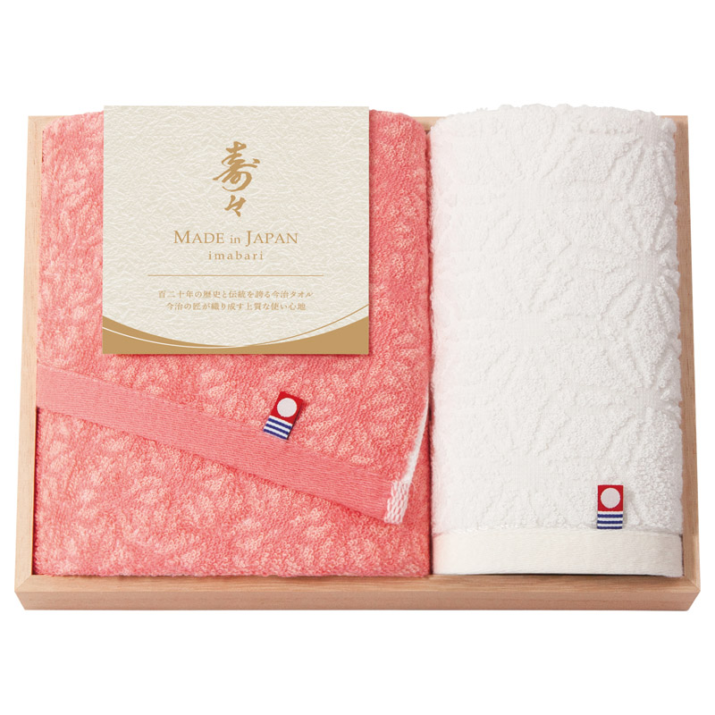 人の一生を表す紅白の色彩に成長を願う麻の葉模様を織り上げた格調高い木箱入りの今治タオル。 成長の願いを込めた紅白の今治タオルは、お祝いや感謝の気持ちを込めて大切な方への贈りものに。