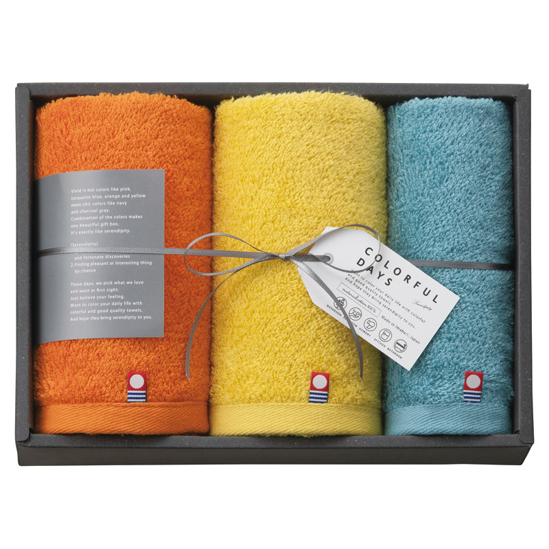 カラフルデイズ フェイス2P・ハンドタオル1P オレンジ