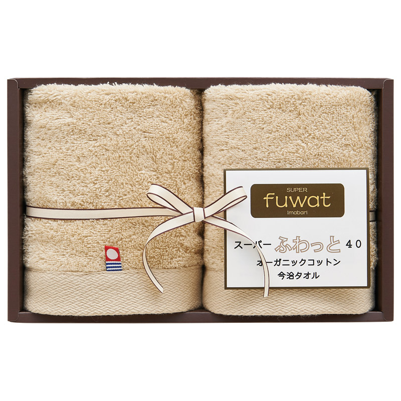 スーパーふわっと40 オーガニックコットン今治ハンドタオル2P ベージュ