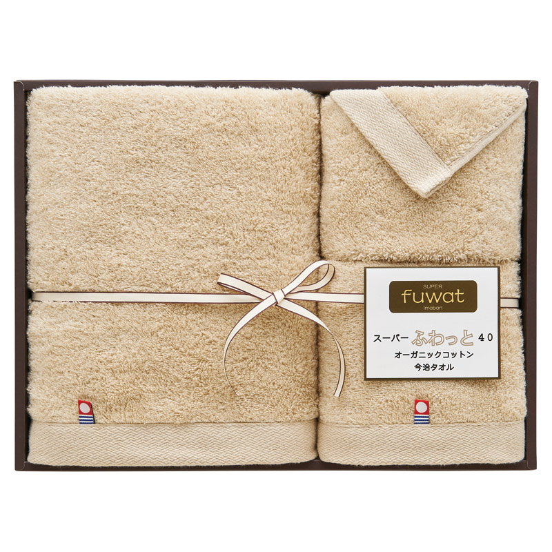 スーパーふわっと40 オーガニックコットン今治タオルセット ベージュ SUT08216BE