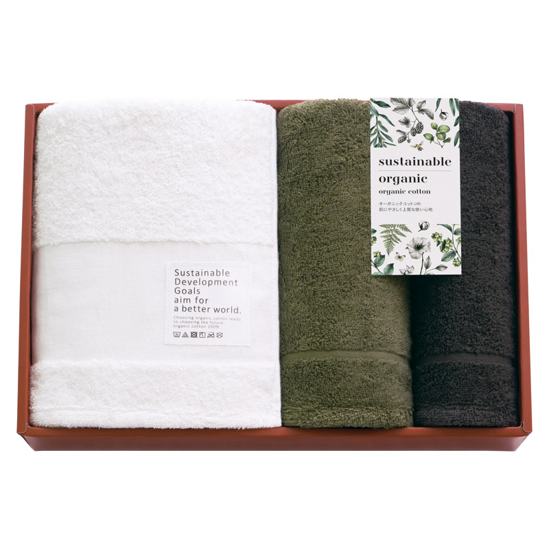 【内容】 バスタオル(約600×1200mm)、フェイスタオル(約340×850mm)、ハンドタオル(約340×340mm)×各1