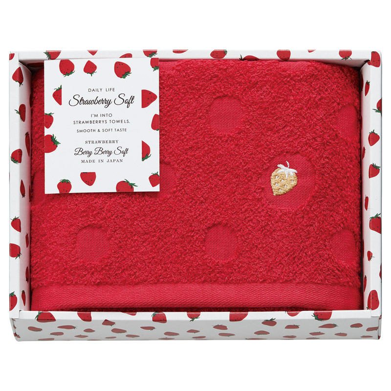 胸がときめく愛らしいイチゴ柄のタオルギフト。 イチゴの魅力がぎゅっと詰まった、SWEETなデザインです。