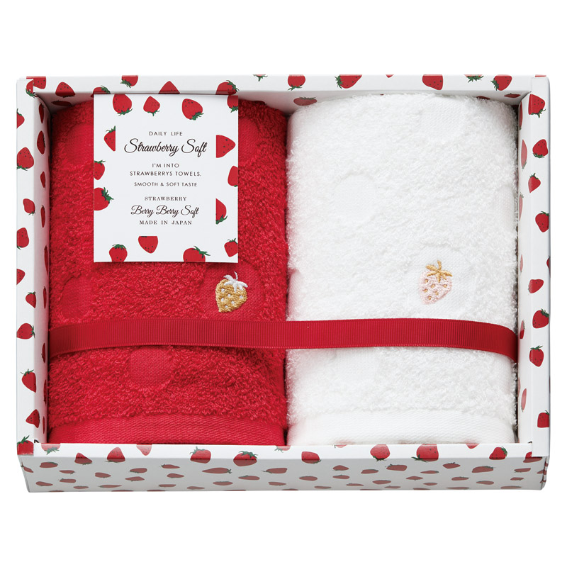 胸がときめく愛らしいイチゴ柄のタオルギフト。 イチゴの魅力がぎゅっと詰まった、SWEETなデザインです。
