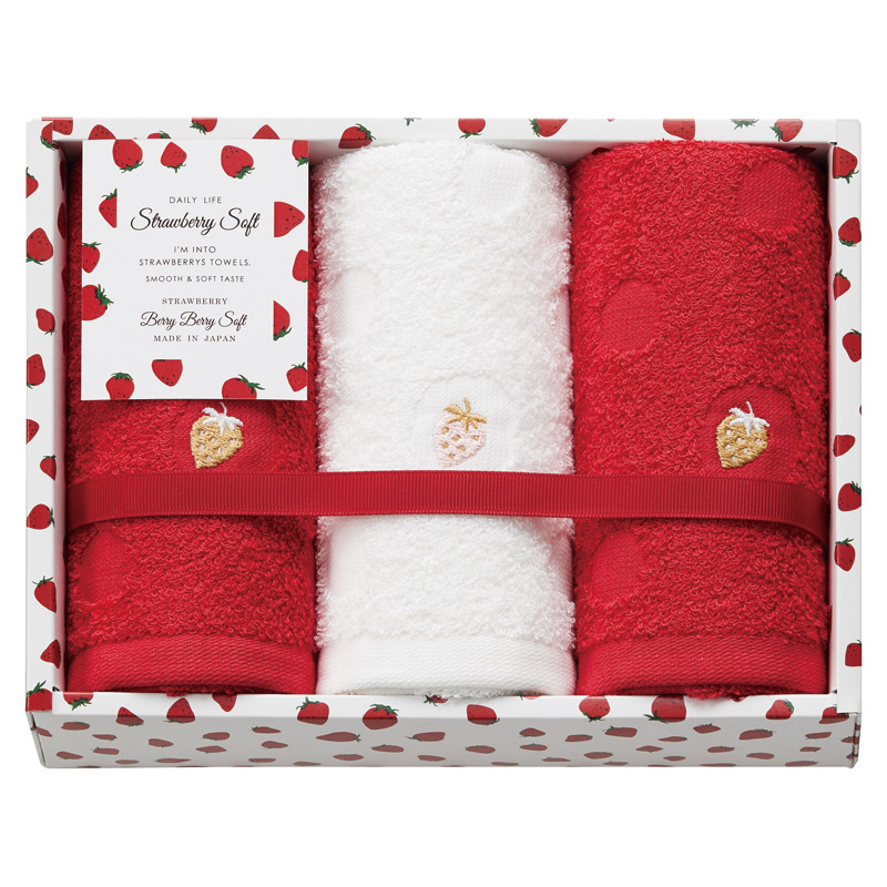 胸がときめく愛らしいイチゴ柄のタオルギフト。 イチゴの魅力がぎゅっと詰まった、SWEETなデザインです。