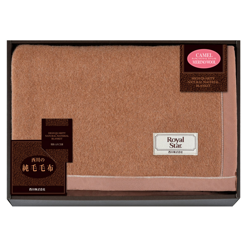 西川の高級獣毛毛布です。 吸湿性、保温性に優れた天然繊維を丁寧に織り上げた一品です。 特別な送りものにどうぞ。