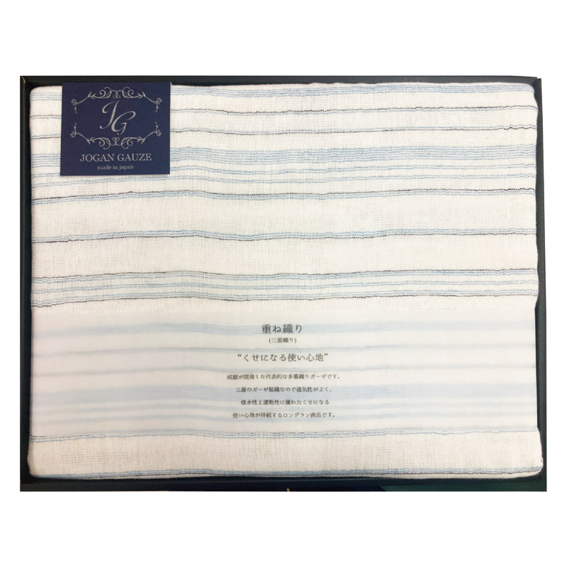 JOGAN GAUZE 重ね織りシンプルストライプガーゼケット ブルー