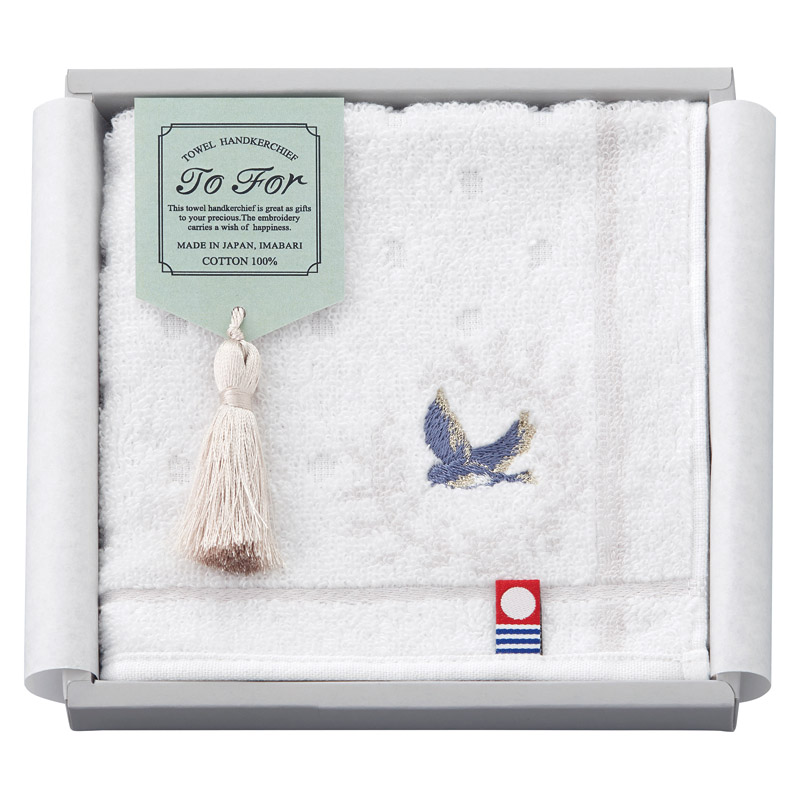 幅広い方に愛用していただけるタオルハンカチです。 ラベルのタッセルをハンカチに付けてご使用いただけます。