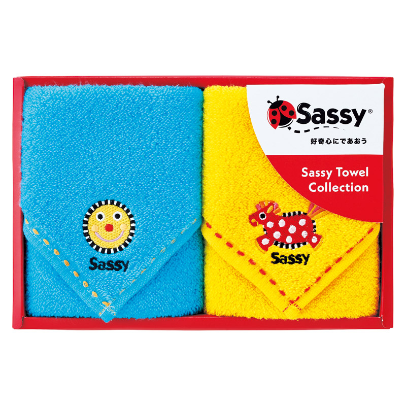 サッシー ミニタオル2P ブルー×イエロー