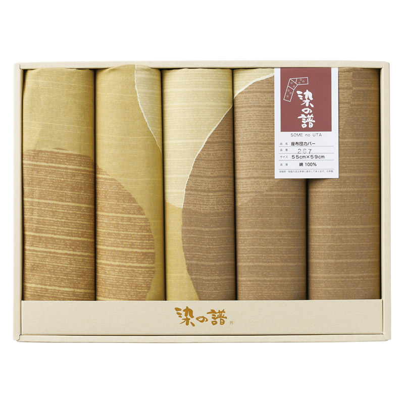 > 染の譜 座布団カバー5枚組 丸重ね ブラウン