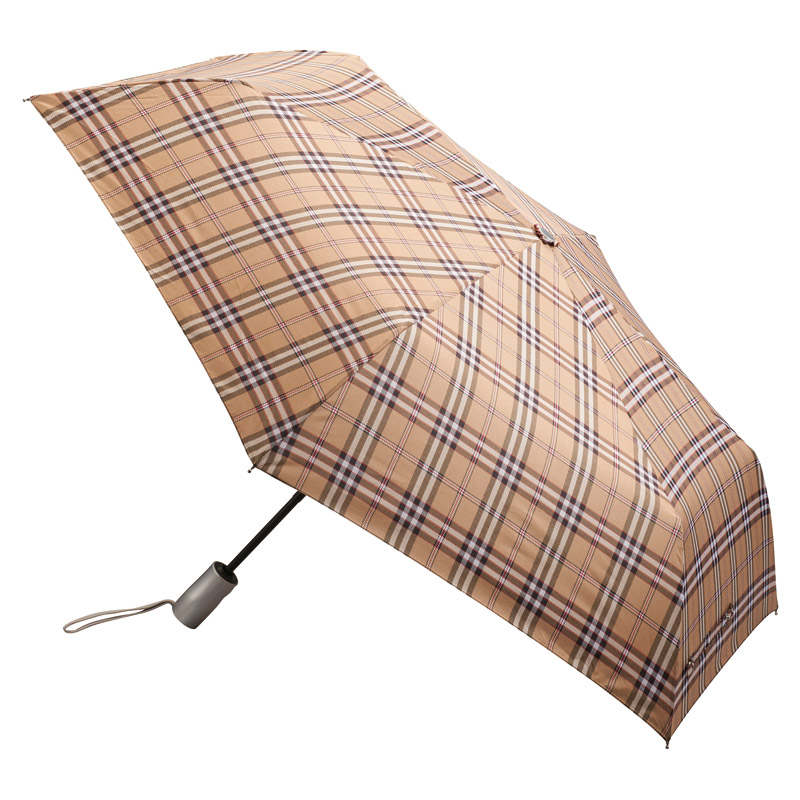 男女兼用チェック自動開閉ミニ傘 ベージュ