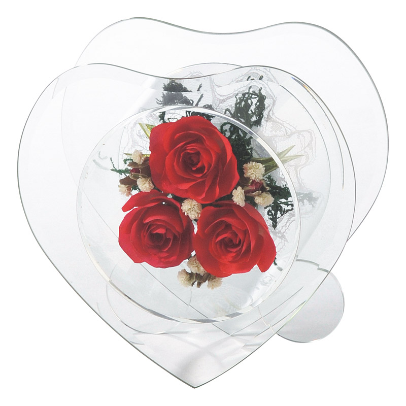 純粋なその想いをいつまでも伝え続けられるよう、色とりどりの花々をガラスの中でアレンジメントしました。