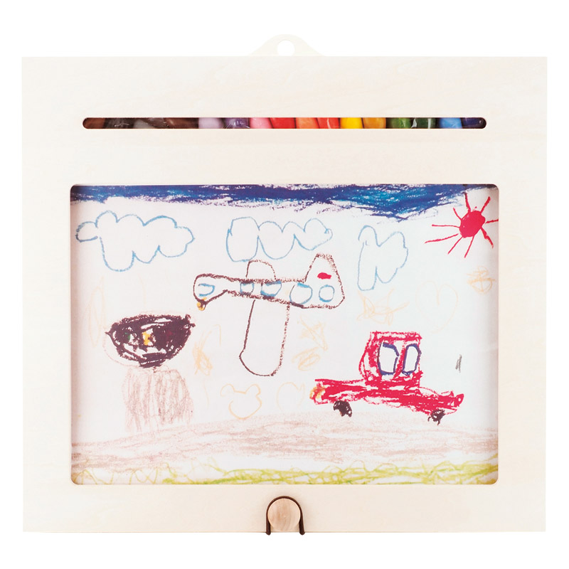 「MUSEO」は子どもの豊かな成長を促す、お絵描きの時間をスマート&シンプルにできる画板です。 付属のクレヨンは握力の弱い小さな子どもの手でも持ちやすい形状になっており、素材も安心、安全にこだわった天然素材を採用しています。
