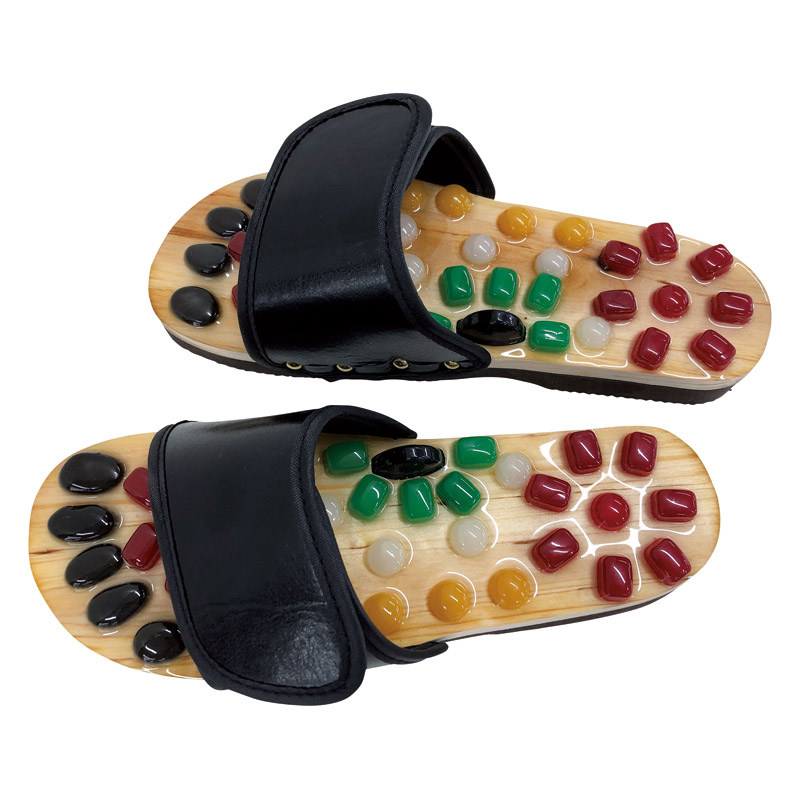 足裏に接する多数の石が歩くたびに気持ちの良い刺激を加えてくれます。 ベルトにはマジックテープを採用し、足幅の調整が可能です。