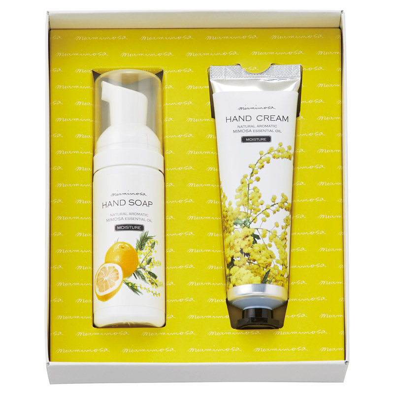 ハンドクリーム天然香料ミモザ精油がふんわりと柔らかく香る、するすると伸びる滑らかな使い心地です。 ハンドソープさわやかで心落ち着くひとときへと誘う天然香料の香りを楽しみながら、手洗いの時間が素敵なリフレッシュタイムとなるソープです。 ハンドクリーンジェル保湿成分ヒアルロン酸と、香料(ティーツリー、ユーカリ、ニアウリ、ラヴィンサラ、ミモザ)のアロマ精油を配合した、ほんのりとアロマの香り漂うジェルです。 洗浄成分エタノール配合。