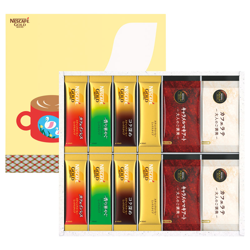 【内容】 ゴールドブレンド(約7g)、ゴールドブレンドコク深め(約7g)、ゴールドブレンド香り華やぐ(約7g)、ゴールドブレンドカフェインレス(約7g)、ゴールドブレンド大人のご褒美カフェラテ(約11. 4g)、ゴールドブレンド大人のご褒美キャラメルマキアート(約10. 6g)×各8(計48本)