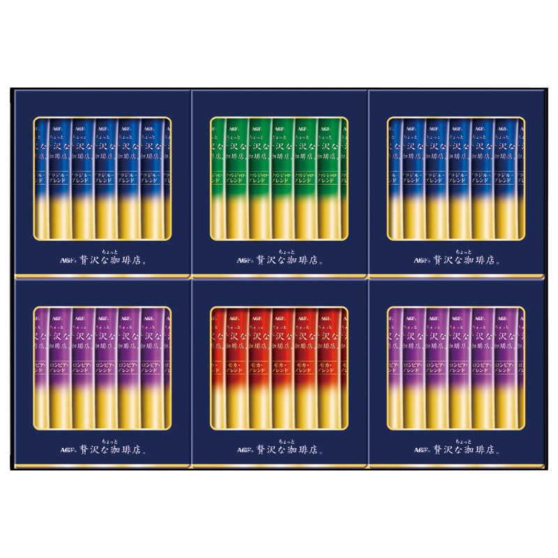 【内容】 ちょっと贅沢な珈琲店スティックブラック(ブラジルブレンド、コロンビアブレンド)(約2g×7P)×各2、ちょっと贅沢な珈琲店スティックブラック(キリマンジャロブレンド、モカブレンド)(約2g×7P)×各1