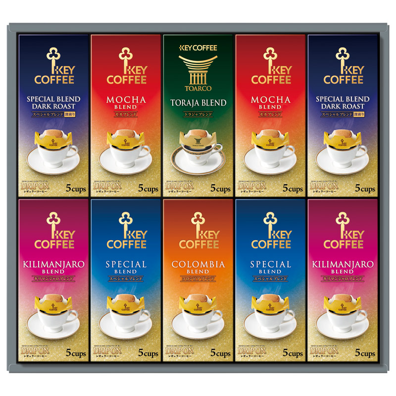 【内容】 トラジャブレンド(8g×5袋)、コロンビアブレンド(8g×5袋)×各1、スペシャルブレンド(8g×5袋)、モカブレンド(8g×5袋)、キリマンジャロブレンド(8g×5袋)、スペシャルブレンド深煎り(7. 5g×5袋)×各2