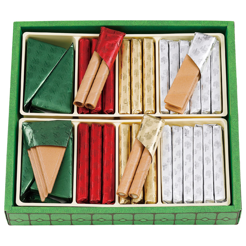 【内容】 三角×8(24枚)、短冊×12(24枚)、丸型ミルクチョコ、丸型ホワイトチョコ×各6(各12本)