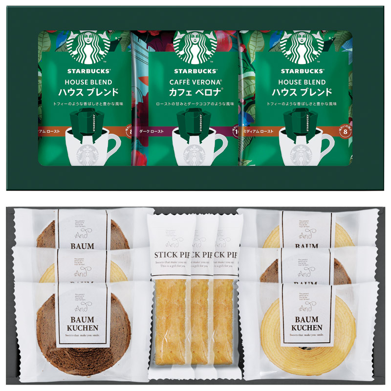 スターバックスコーヒーギフトとお菓子のセットでワンランクアップのひとときを。