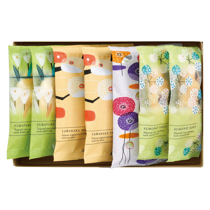 えくぼ屋の美味がたっぷり詰まった、個性豊かなおかきとおせんべいの詰合せです。 味と香りと口当たり、彩り豊かに咲きました。