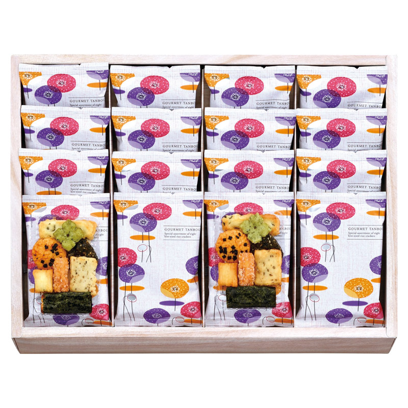 国内産海苔、昆布など八種類の味を活かし一袋に包みました。 それぞれの風味が見事に調和された格調高いハーモニーを奏でます。