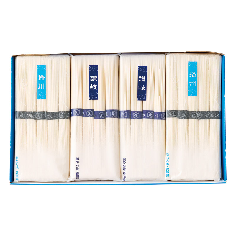 【内容】 播州そうめん(約50g×5束)、讃岐そうめん(約50g×4束)×各2