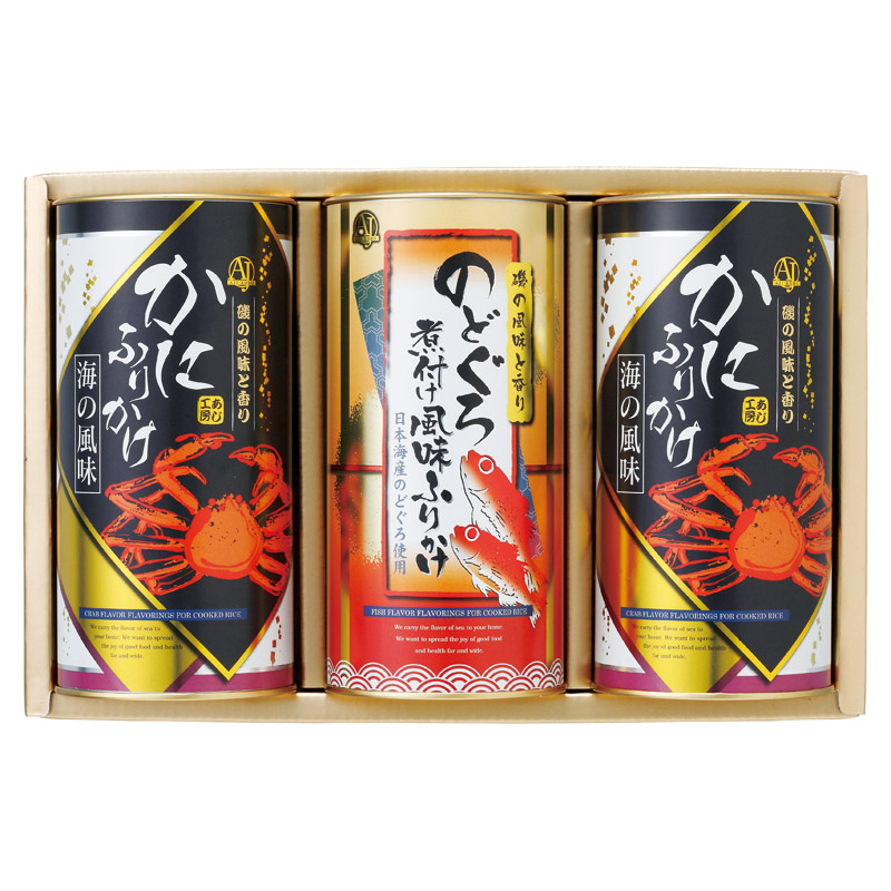 【内容】 かにふりかけ(約50g)×2、のどぐろ煮付け風味ふりかけ(約50g)×1