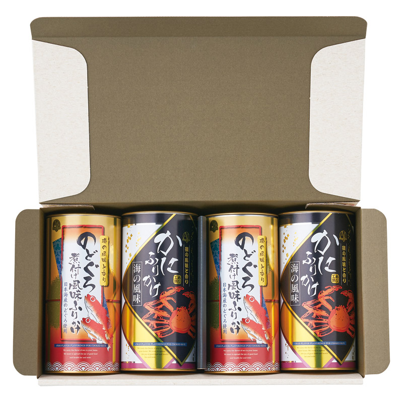 【内容】 かにふりかけ(約50g)、のどぐろ煮付け風味ふりかけ(約50g)×各2