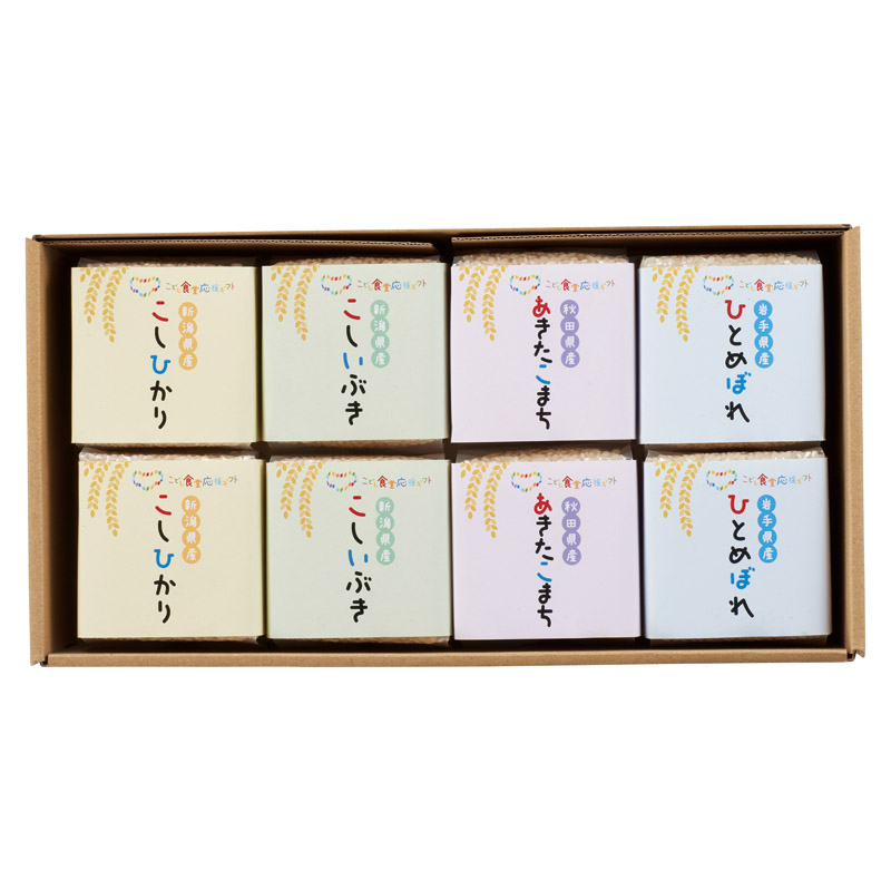 【内容】 新潟県産コシヒカリ(約300g)、新潟県産こしいぶき(約300g)、秋田県産あきたこまち(約300g)、岩手県産ひとめぼれ(約300g)×各2