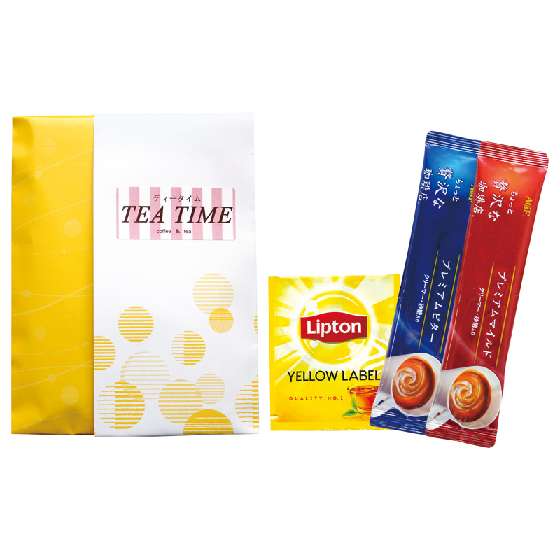 【内容】 リプトンイエローラベル(約2g)、AGFコーヒープレミアムマイルド(約7g)、AGFコーヒープレミアムビター(約7g)×各1