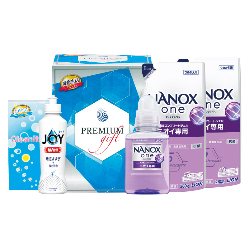 【内容】 ライオンナノックスワンニオイ専用(約380g)、洗濯ネット、P&G除菌ジョイコンパクト(約170ml)×各1、ライオンナノックスワンニオイ専用詰め替え(約280g)×2