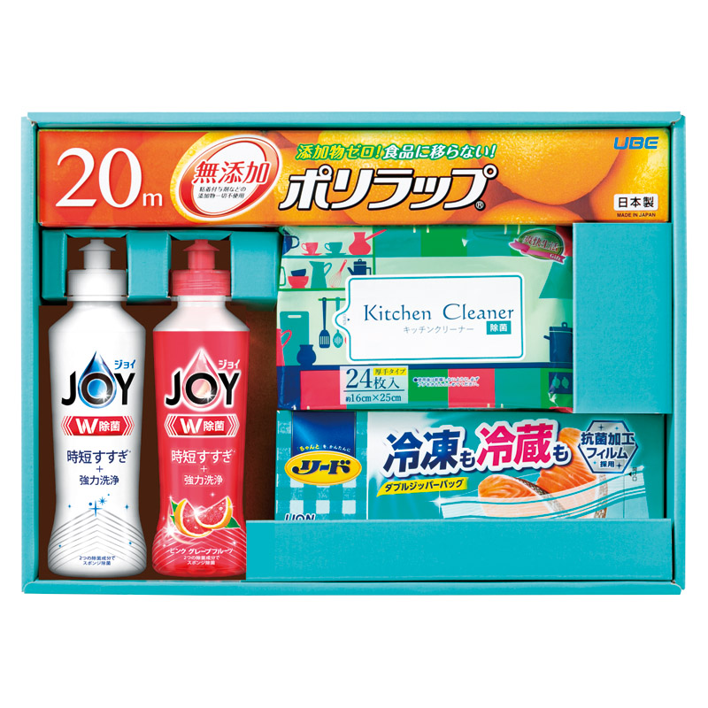 【内容】 P&G除菌ジョイコンパクト(約170ml)、P&G除菌ジョイコンパクトフロリダグレープフルーツ(約170ml)、ライオンリード冷凍も冷蔵も新鮮保存バッグ(M3枚)、除菌キッチンクリーナー(24枚)、ポリラップ(約30cm×20m)×各1