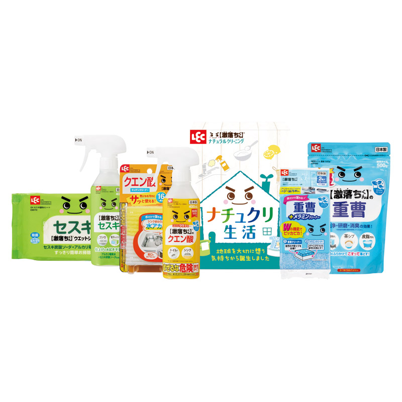 【内容】 激落ちくんクエン酸スプレー(約400ml)、激落ちくんクエン酸キッチンクリーナー(16枚)、激落ちくん重曹(約500g)、激落ちくん重曹メラミンクリーナー(2枚入)、激落ちくんセスキスプレー(約400ml)、GNセスキウェットシート(20枚)×各1
